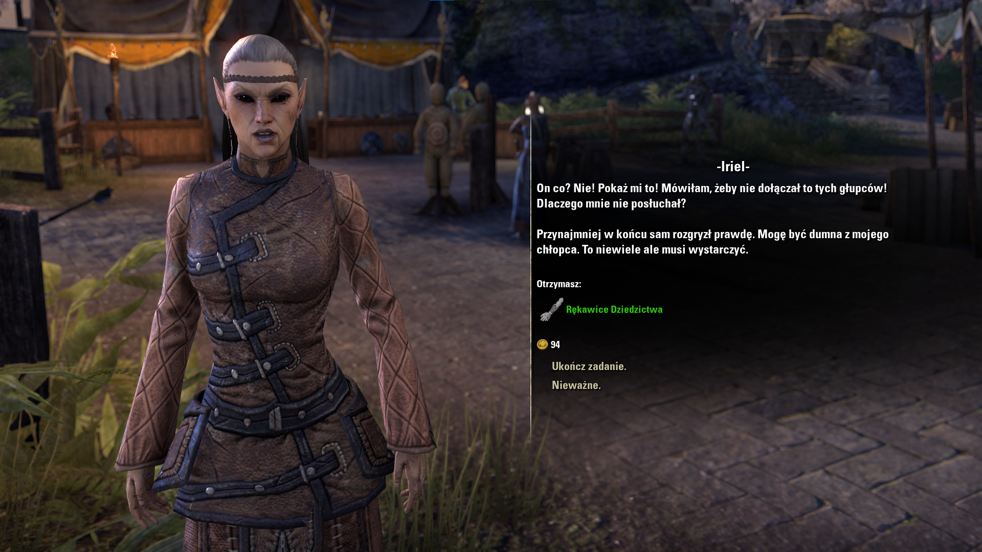 | Description | Podczas misji w Auridon "Skruszony syn" gdy rozmawiamy z Iriel jest tekst: "mówiłam, żeby nie dołączał TO tych głupców" zamiast "DO tych głupców" | ||||
